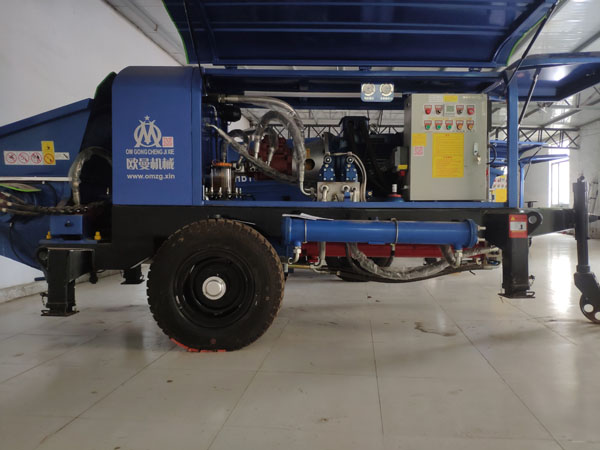 加大砼缸,吸料更多,提高施工速度,整機重量:3500kg,功率:75kw,理論最大混凝土輸送量:50m3/h,【 適合工況】適用于農建混凝土輸送,可滿足地下室混凝土大面積施工要求